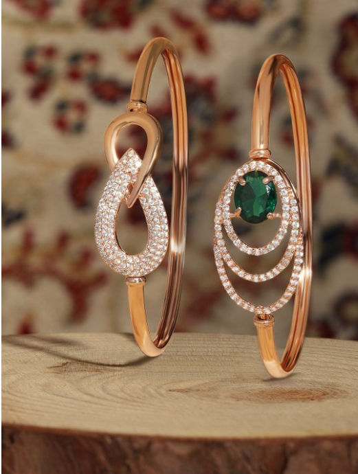 Set of 2 rose gold and white kada bracelets